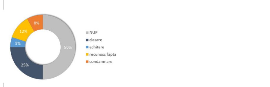 25% (cel puțin) dintre cazurile sesizate intră în urmărire penală și se finalizează cu clasarea dosarului de urmărire penală din cauza lipsei de probe suficiente;